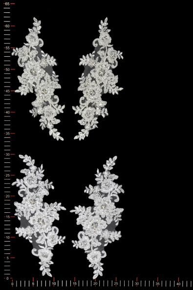 Die Applikation ist dekoriert und besteht aus eleganter Spitze und einzigartigen Accessoires, die den Aufnäher aufhellen. Das gesamte Design des Produkts ermöglicht es Ihnen, es als einzigartiges dekoratives Element in einem Abend-, Cocktail- oder Hochzeitskleid zu verwenden.