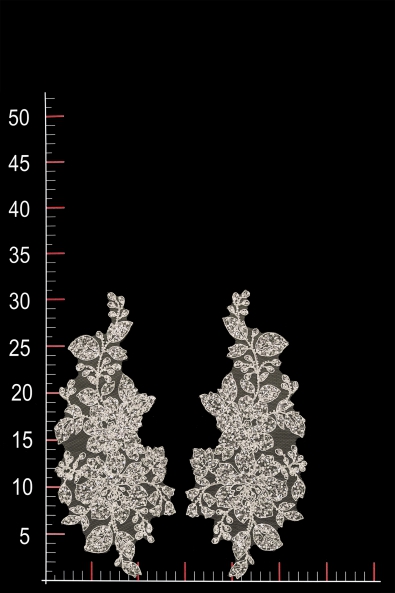 Die Applikation ist dekoriert und besteht aus eleganter Spitze und einzigartigen Accessoires, die den Aufnäher aufhellen. Das gesamte Design des Produkts ermöglicht es Ihnen, es als einzigartiges dekoratives Element in einem Abend-, Cocktail- oder Hochzeitskleid zu verwenden.