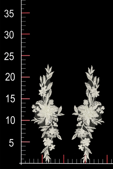 Die Applikation ist dekoriert und besteht aus eleganter Spitze und einzigartigen Accessoires, die den Aufnäher aufhellen. Das gesamte Design des Produkts ermöglicht es Ihnen, es als einzigartiges dekoratives Element in einem Abend-, Cocktail- oder Hochzeitskleid zu verwenden.
