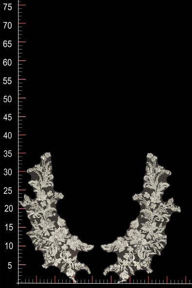 Die Applikation ist dekoriert und besteht aus eleganter Spitze und einzigartigen Accessoires, die den Aufnäher aufhellen. Das gesamte Design des Produkts ermöglicht es Ihnen, es als einzigartiges dekoratives Element in einem Abend-, Cocktail- oder Hochzeitskleid zu verwenden.