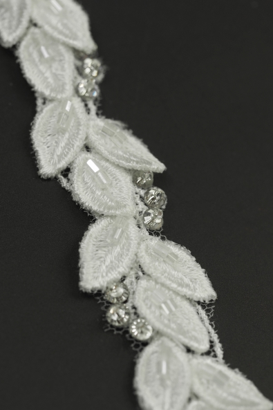 Die Applikation ist dekoriert und besteht aus eleganter Spitze und einzigartigen Accessoires, die den Aufnäher aufhellen. Das gesamte Design des Produkts ermöglicht es Ihnen, es als einzigartiges dekoratives Element in einem Abend-, Cocktail- oder Hochzeitskleid zu verwenden.