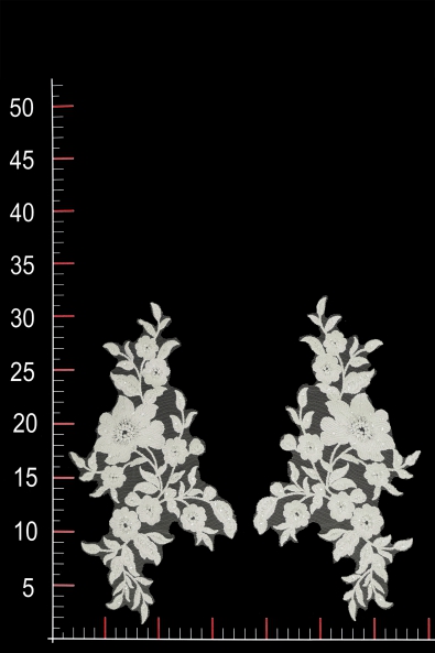 Die Applikation ist dekoriert und besteht aus eleganter Spitze und einzigartigen Accessoires, die den Aufnäher aufhellen. Das gesamte Design des Produkts ermöglicht es Ihnen, es als einzigartiges dekoratives Element in einem Abend-, Cocktail- oder Hochzeitskleid zu verwenden.