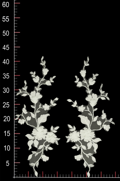 Die Applikation ist dekoriert und besteht aus eleganter Spitze und einzigartigen Accessoires, die den Aufnäher aufhellen. Das gesamte Design des Produkts ermöglicht es Ihnen, es als einzigartiges dekoratives Element in einem Abend-, Cocktail- oder Hochzeitskleid zu verwenden.