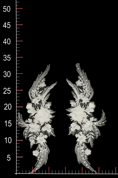 Die Applikation ist dekoriert und besteht aus eleganter Spitze und einzigartigen Accessoires, die den Aufnäher aufhellen. Das gesamte Design des Produkts ermöglicht es Ihnen, es als einzigartiges dekoratives Element in einem Abend-, Cocktail- oder Hochzeitskleid zu verwenden.