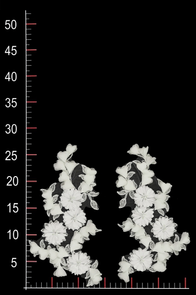 Die Applikation ist dekoriert und besteht aus eleganter Spitze und einzigartigen Accessoires, die den Aufnäher aufhellen. Das gesamte Design des Produkts ermöglicht es Ihnen, es als einzigartiges dekoratives Element in einem Abend-, Cocktail- oder Hochzeitskleid zu verwenden.
