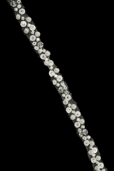 Aus einer eleganten Spitze, die durch ihr Design entzückt, wurde ein hochwertiges Dekoband mit einer Breite von bis zu 5 cm hergestellt. Lichtreflektierende Elemente betonen nicht nur die Schönheit des Produkts.