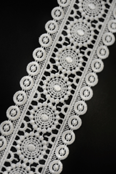 Wysokiej jakości gipiura. Jej ponadczasowy, elegancki wzór idealnie sprawdzi się w klasycznych i nowoczesnych modelach sukien ślubnych.