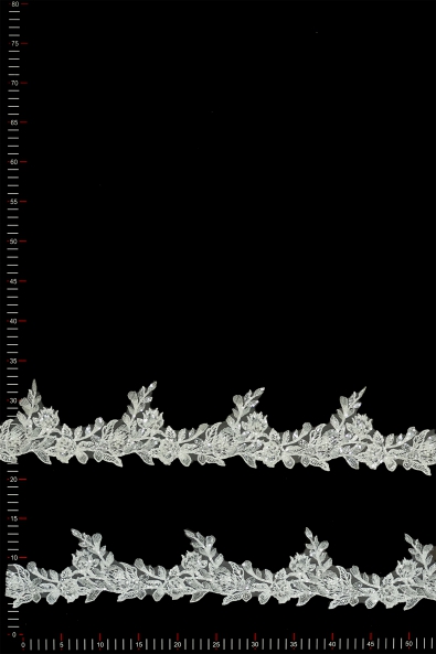 Hochwertig dekoriertes Band aus äußerst eleganter Spitze. Es begeistert mit schönen Mustern und Accessoires, die den Charme des damit verzierten Stoffes unterstreichen. Es ist der perfekte Abschluss für jedes Hochzeit-, Abend- oder jedes Cocktailkleid. Dieses unscheinbare Detail fällt auf und ruft Bewunderung hervor.