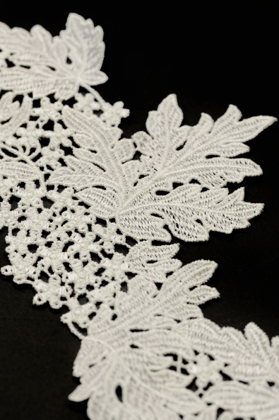 Das hochwertigste, schmucklose Band aus Gipüre. Perfekt als Schmuckrand von Kleidern und Tischdecken, Vorhängen oder anderen Textilien. Die gewölbte Form und das interessante Maschenmuster verleihen dem Stoff einen dezenten dekorativen Akzent.