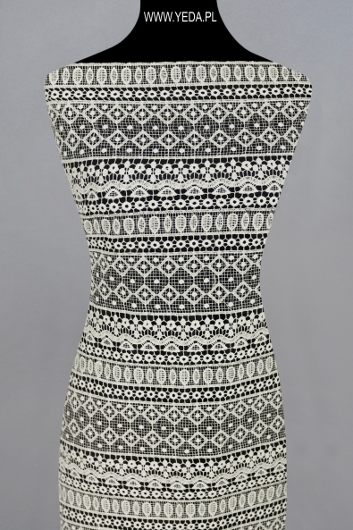 Das hochwertigste, schmucklose Band aus Gipüre. Perfekt als Schmuckrand von Kleidern und Tischdecken, Vorhängen oder anderen Textilien. Die gewölbte Form und das interessante Maschenmuster verleihen dem Stoff einen dezenten dekorativen Akzent.