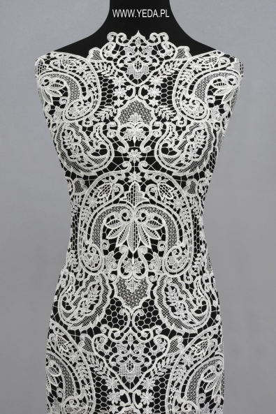 Hochwertige Spitze aus klassischer Gipüre. Es zeichnet sich durch ein gewölbtes und stilvolles Muster aus, das sofort um Aufsehen sorgt. Perfekt für einen tollen Abend, eine Hochzeit oder einen Cocktail.