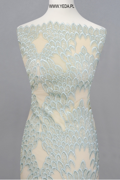 Pfefferminzfarbene Spitze Auf Ahutfarbenem Tüll.