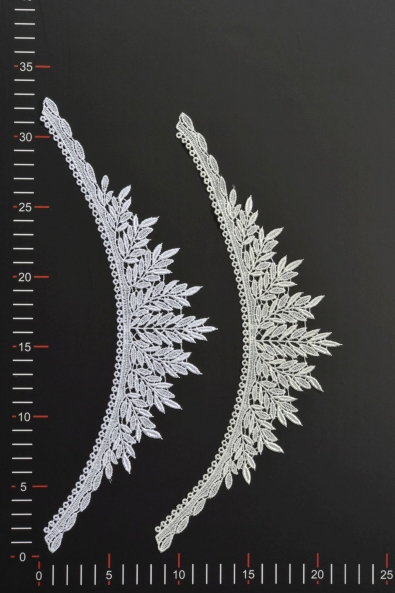 Hochwertige, unverzierte Applikation aus Gipüre. Es zeichnet sich durch eine solide Fertigung, klare Form und breite Spitzenmaschen aus. Auf ein Hochzeits-, Abend- oder Cocktailkleid genäht, verleiht es ihm einen individuellen und einzigartigen Charakter.