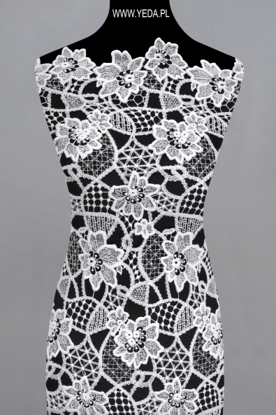 Hochwertige Spitze aus klassischer Gipüre. Es zeichnet sich durch ein gewölbtes und stilvolles Muster aus, das sofort um Aufsehen sorgt. Perfekt für einen tollen Abend, eine Hochzeit oder einen Cocktail.