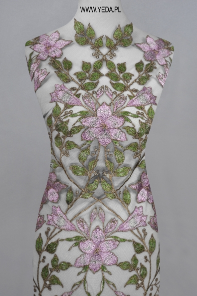 VIELFARBIGE SPITZE GESTICKT AUF SCHWARZEM TÜLL.