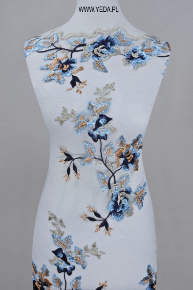 VIELFARBIGE SPITZE GESTICKT AUF DUNKELBLAUEM TÜLL