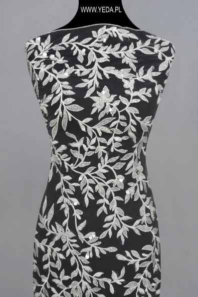 Wunderschön passend zu einem trendigen Muster, das auf einen zarten, leicht dehnbaren Tüll gestickt ist. Stickerei, verziert mit transparenten Pailletten und Spitze, perfekt für die Gestaltung eines einzigartigen Hochzeitskleides.