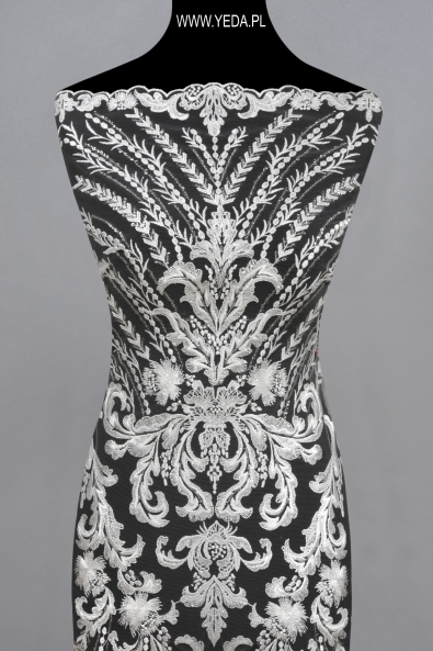 Wunderschön passend zu einem trendigen Muster, das auf einen zarten, leicht dehnbaren Tüll gestickt ist. Stickerei, verziert mit transparenten Pailletten und Spitze, perfekt für die Gestaltung eines einzigartigen Hochzeitskleides.