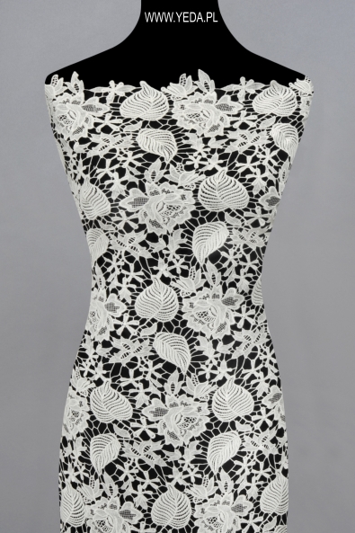 Wysokiej jakości gipiura. Jej ponadczasowy, elegancki wzór idealnie sprawdzi się w klasycznych i nowoczesnych modelach sukien ślubnych.
