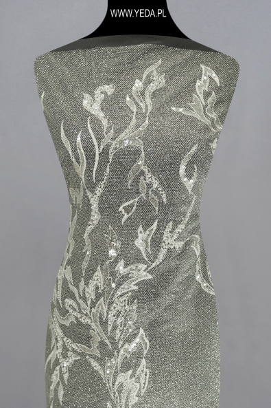 Hochwertig dekorierte Abendspitze für Frauen, die Wert auf Eleganz legen. Das einzigartige Muster wurde auf Tüll gestickt und anschließend mit spektakulären Details verziert. Diese Art von Material fällt auf und verleiht dem Benutzer einen verführerischen Charakter. Diese Art von Spitze ist die Basis eines klassischen Abend- oder Cocktailkleides.