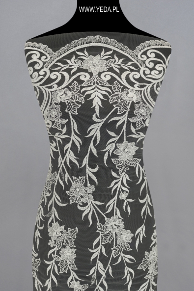 Weibliche und elegante nichtverzierte Spitze, die sich durch höchste Herstellungsqualität auszeichnet. Das einmalige Dessin bewirkt, dass sich dieser Stoff sehr gut als Teil einer Cocktail-, Abend- oder sogar Hochzeitskreation bewähren wird. Der ästhetische Hauptvorteil dieses Produkts ist eben das erwähnte Muster, da an der Spitze keine weitere Verzierung erscheint. Dieser Stoff passt ideal zu Frauen, die den klassischen Stil und die sich daraus ergebende subtile Eleganz schätzen.