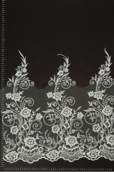Hochwertig dekoriertes Band aus äußerst eleganter Spitze. Es begeistert mit schönen Mustern und Accessoires, die den Charme des damit verzierten Stoffes unterstreichen. Es ist der perfekte Abschluss für jedes Hochzeit-, Abend- oder jedes Cocktailkleid. Dieses unscheinbare Detail fällt auf und ruft Bewunderung hervor.