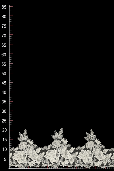 Hochwertig dekoriertes Band aus äußerst eleganter Spitze. Es begeistert mit schönen Mustern und Accessoires, die den Charme des damit verzierten Stoffes unterstreichen. Es ist der perfekte Abschluss für jedes Hochzeit-, Abend- oder jedes Cocktailkleid. Dieses unscheinbare Detail fällt auf und ruft Bewunderung hervor.