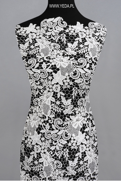 Hochwertige Spitze aus klassischer Gipüre. Es zeichnet sich durch ein gewölbtes und stilvolles Muster aus, das sofort um Aufsehen sorgt. Perfekt für einen tollen Abend, eine Hochzeit oder einen Cocktail.