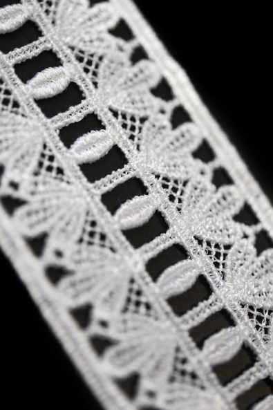 Wysokiej jakości gipiura. Jej ponadczasowy, elegancki wzór idealnie sprawdzi się w klasycznych i nowoczesnych modelach sukien ślubnych.