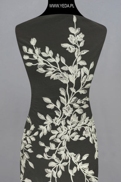 Weibliche und elegante nichtverzierte Spitze, die sich durch höchste Herstellungsqualität auszeichnet. Das einmalige Dessin bewirkt, dass sich dieser Stoff sehr gut als Teil einer Cocktail-, Abend- oder sogar Hochzeitskreation bewähren wird. Der ästhetische Hauptvorteil dieses Produkts ist eben das erwähnte Muster, da an der Spitze keine weitere Verzierung erscheint. Dieser Stoff passt ideal zu Frauen, die den klassischen Stil und die sich daraus ergebende subtile Eleganz schätzen.