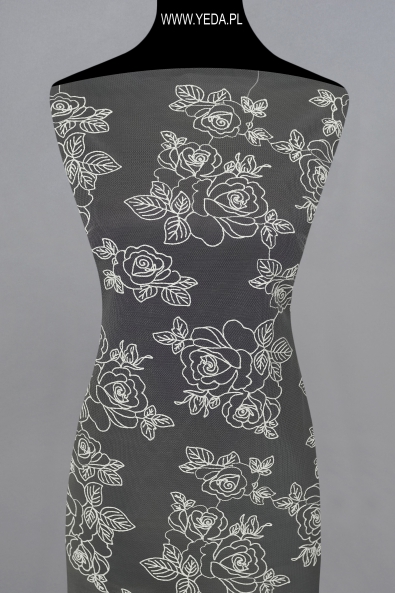 Weibliche und elegante nichtverzierte Spitze, die sich durch höchste Herstellungsqualität auszeichnet. Das einmalige Dessin bewirkt, dass sich dieser Stoff sehr gut als Teil einer Cocktail-, Abend- oder sogar Hochzeitskreation bewähren wird. Der ästhetische Hauptvorteil dieses Produkts ist eben das erwähnte Muster, da an der Spitze keine weitere Verzierung erscheint. Dieser Stoff passt ideal zu Frauen, die den klassischen Stil und die sich daraus ergebende subtile Eleganz schätzen.