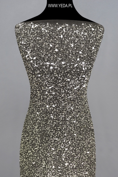 Verzierte Spitze von hoher Qualität, die sich durch originelles Muster und dekorative Details auszeichnet. Geschaffen mit dem Gedanken an anspruchsvollste Frauen, die auf eine einmalige und effektvolle Stilisierung Wert legen. Die vorgestellte Spitze wird sich als Basis einer Hochzeits- oder Abendkreation bewähren. Ihre Schönheit verdankt sie den darin enthaltenen Details. Sie spiegeln das Licht wider und erhellen den Stoff, wodurch sie zum Hingucker werden.