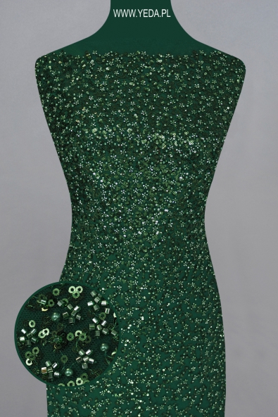 Hochwertig dekorierte Abendspitze für Frauen, die Wert auf Eleganz legen. Das einzigartige Muster wurde auf Tüll gestickt und anschließend mit spektakulären Details verziert. Diese Art von Material fällt auf und verleiht dem Benutzer einen verführerischen Charakter. Diese Art von Spitze ist die Basis eines klassischen Abend- oder Cocktailkleides.