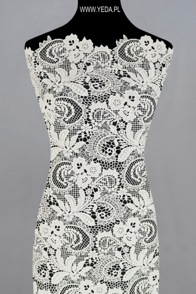 Hochwertige Spitze aus klassischer Gipüre. Es zeichnet sich durch ein gewölbtes und stilvolles Muster aus, das sofort um Aufsehen sorgt. Perfekt für einen tollen Abend, eine Hochzeit oder einen Cocktail.