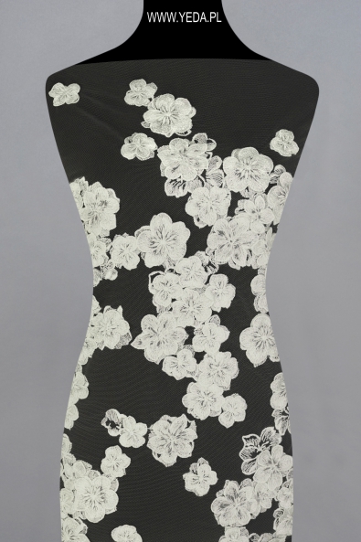 Weibliche und elegante nichtverzierte Spitze, die sich durch höchste Herstellungsqualität auszeichnet. Das einmalige Dessin bewirkt, dass sich dieser Stoff sehr gut als Teil einer Cocktail-, Abend- oder sogar Hochzeitskreation bewähren wird. Der ästhetische Hauptvorteil dieses Produkts ist eben das erwähnte Muster, da an der Spitze keine weitere Verzierung erscheint. Dieser Stoff passt ideal zu Frauen, die den klassischen Stil und die sich daraus ergebende subtile Eleganz schätzen.