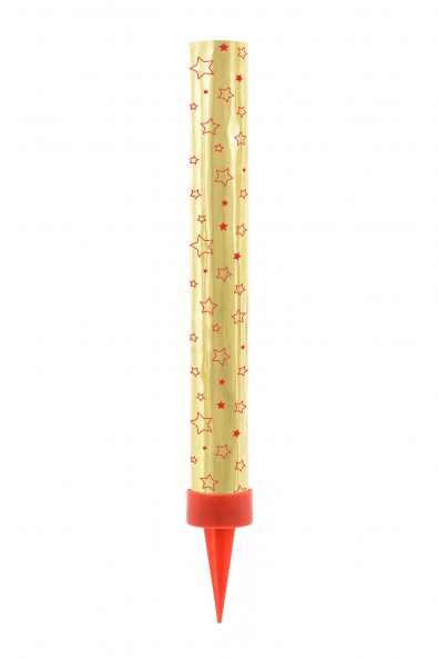 Golden cake fountains with a red star pattern, height approx. 12 cm.
