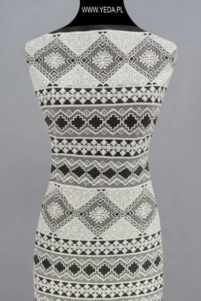 Feminine and elegant not embellished lace with the highest quality. The unique pattern makes this material ideally suited as a part of a cocktail, evening, or even wedding creation. The main aesthetic value of this product is just the mentioned pattern, because no additional decorations appear on the lace. This material is perfect for women who value classic style and subtle elegance.