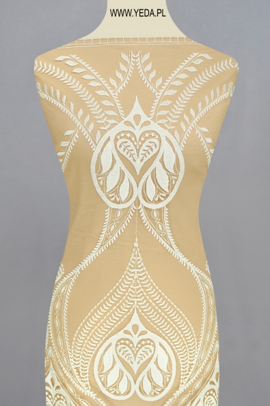 Feminine and elegant not embellished lace with the highest quality. The unique pattern makes this material ideally suited as a part of a cocktail, evening, or even wedding creation. The main aesthetic value of this product is just the mentioned pattern, because no additional decorations appear on the lace. This material is perfect for women who value classic style and subtle elegance.