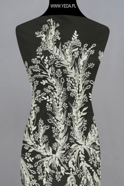 High-quality embellished lace with a unique pattern and decorative details. It was created for the most demanding women who want to achieve unique and effective styling. The presented lace will be perfect as a base for a wedding or evening creation. It owes its charm to the details on it. They reflect light and illuminate the material, and consequently catch the eye.