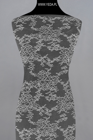 Feminine and elegant not embellished lace with the highest quality. The unique pattern makes this material ideally suited as a part of a cocktail, evening, or even wedding creation. The main aesthetic value of this product is just the mentioned pattern, because no additional decorations appear on the lace. This material is perfect for women who value classic style and subtle elegance.