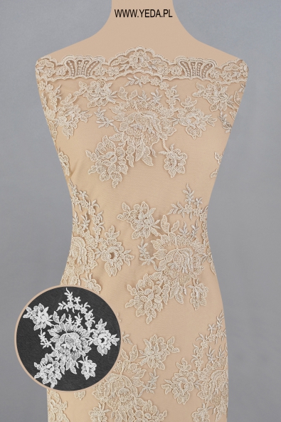 EVENING LACE ML13506 Price 10.00 zł / meter Ivory+gold Ivory+platinum string white+platinum White meter Add to cart On sale!