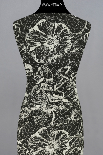 High-quality embellished lace with a unique pattern and decorative details. It was created for the most demanding women who want to achieve unique and effective styling. The presented lace will be perfect as a base for a wedding or evening creation. It owes its charm to the details on it. They reflect light and illuminate the material, and consequently catch the eye.