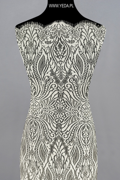 Feminine and elegant not embellished lace with the highest quality. The unique pattern makes this material ideally suited as a part of a cocktail, evening, or even wedding creation. The main aesthetic value of this product is just the mentioned pattern, because no additional decorations appear on the lace. This material is perfect for women who value classic style and subtle elegance.