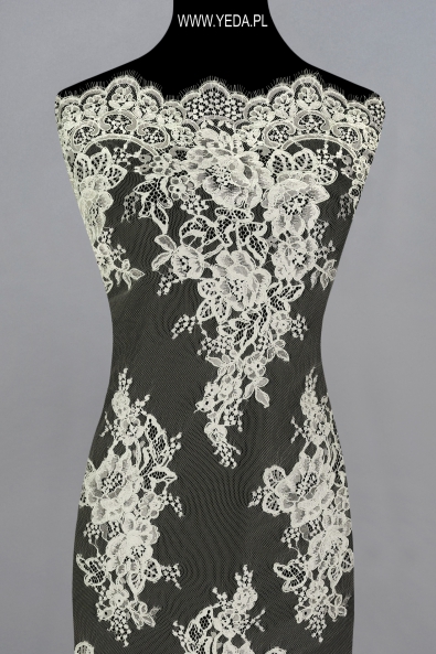 Feminine and elegant not embellished lace with the highest quality. The unique pattern makes this material ideally suited as a part of a cocktail, evening, or even wedding creation. The main aesthetic value of this product is just the mentioned pattern, because no additional decorations appear on the lace. This material is perfect for women who value classic style and subtle elegance.