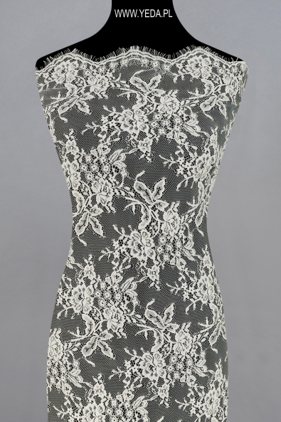 Feminine and elegant not embellished lace with the highest quality. The unique pattern makes this material ideally suited as a part of a cocktail, evening, or even wedding creation. The main aesthetic value of this product is just the mentioned pattern, because no additional decorations appear on the lace. This material is perfect for women who value classic style and subtle elegance.