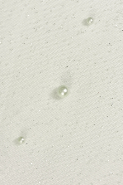 OFF WHITE TULLE FABRIC WITH GLITTER AND BEADED PEARLS
