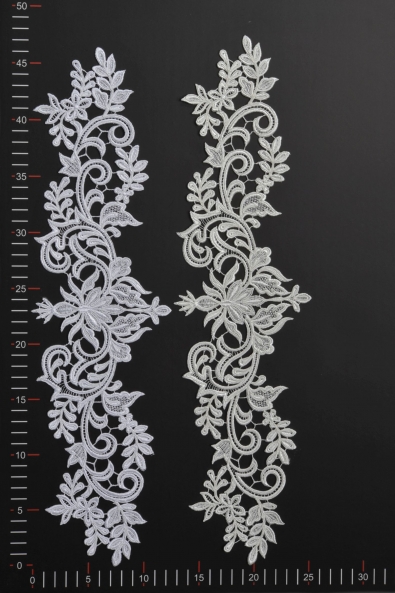 High quality motif made of guipure . It is distinguished by a solid form, clear shape and wide lace mesh. Sewn on a wedding, evening or cocktail dress, it gives it an individual and unique character.