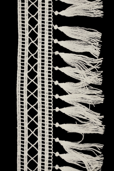 The highest quality undecorated trim made of guipure. Perfect as a finishing element of both dresses and tablecloths, curtains or other textiles. The convex form and interesting lace pattern make the fabric gain a subtle decorative accent.