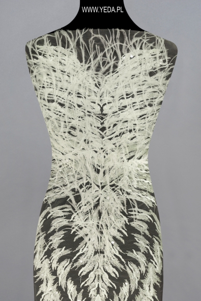 High-quality embellished lace with a unique pattern and decorative details. It was created for the most demanding women who want to achieve unique and effective styling. The presented lace will be perfect as a base for a wedding or evening creation. It owes its charm to the details on it. They reflect light and illuminate the material, and consequently catch the eye.