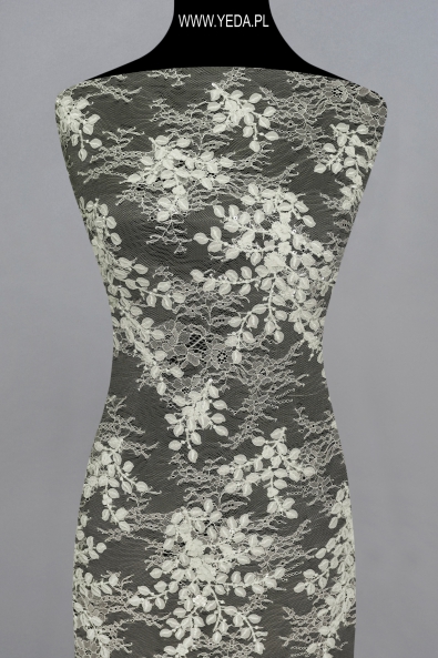 High-quality embellished lace with a unique pattern and decorative details. It was created for the most demanding women who want to achieve unique and effective styling. The presented lace will be perfect as a base for a wedding or evening creation. It owes its charm to the details on it. They reflect light and illuminate the material, and consequently catch the eye.